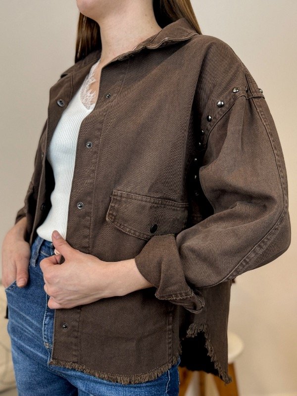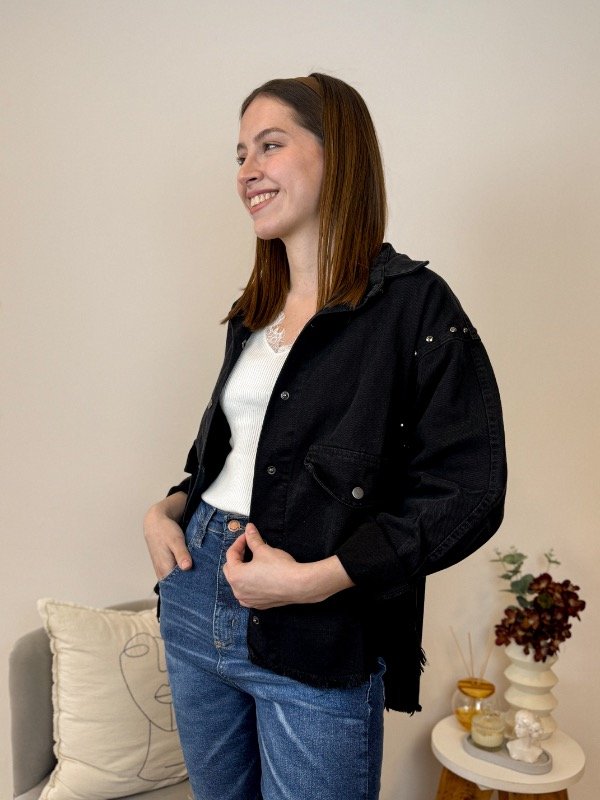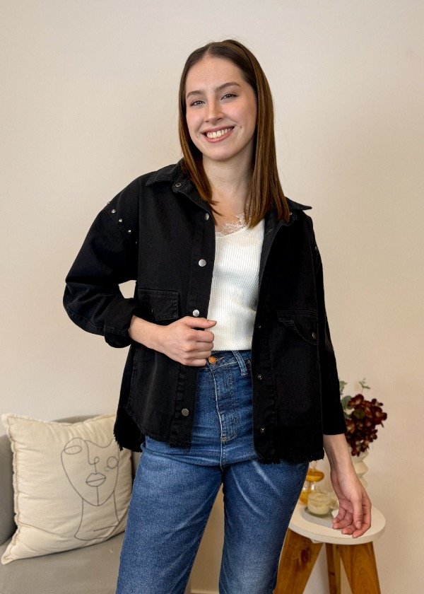 Confeccionado en denim de alta calidad, este camisaco se destaca por su cierre frontal con botones a presión y su cuello clásico, aportando un toque atemporal y versátil a cualquier look. Sus puños y dos bolsillos delanteros también cuentan con botones a presión para mayor practicidad y diseño. Los apliques metálicos en la sisa añaden un guiño moderno, mientras que el bajo acabado en "U" desflecado le otorga un aire desenfadado y actual. Perfecto para combinar con jeans o vestidos, el Camisaco Rihana es la elección ideal para quienes buscan destacar con sofisticación y tendencia. Sumalo a tu guardarropa y experimentá la fusión entre elegancia, funcionalidad y espíritu rebelde.