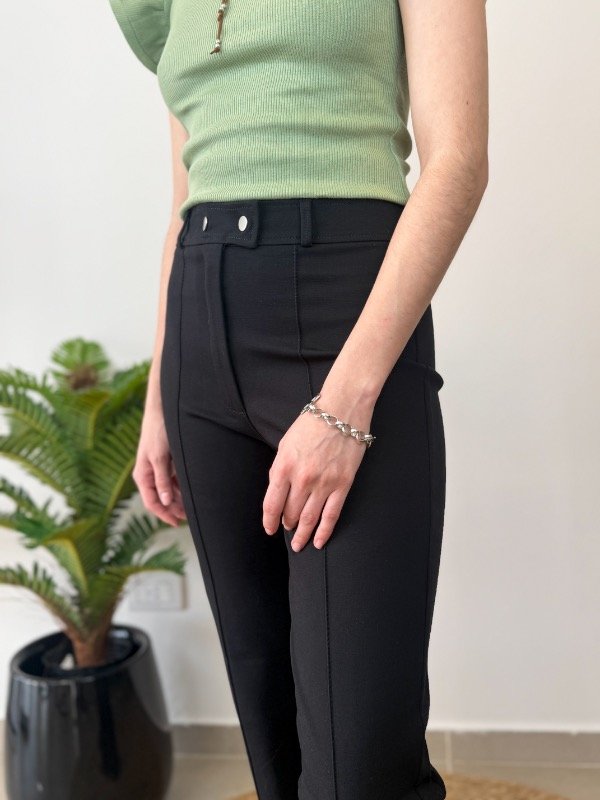 Confeccionada en punto roma, esta legging se distingue por su textura suave, elástica y de excelente caída, brindando un calce perfecto que acompaña tus movimientos durante todo el día. El diseño incorpora pasa cintos en la cintura, permitiéndote sumar accesorios y personalizar tu look de manera práctica y versátil. El cierre de cremallera, acompañado de botones metálicos a presión, añade un toque moderno y funcional, facilitando el uso y realzando la silueta. Uno de sus detalles más atractivos es la costura central en la pierna, que estiliza y aporta sofisticación, mientras que la abertura en el lateral bajo suma un guiño de originalidad y tendencia. Esta combinación hace de la Legging Lilith una prenda versátil, ideal tanto para looks urbanos como para propuestas más elegantes.