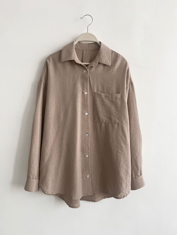 Descripción : Camisa básica holgada de cuello solapa y puños. Bolsillo en el delantero izquierdo. Apertura frontal con botones. Espalda con tabla pinzada.