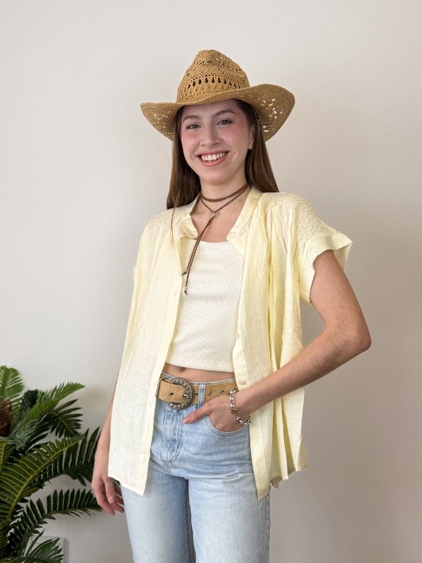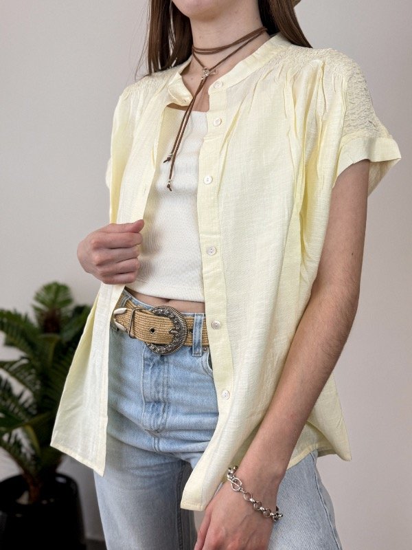 Confeccionada en lino, esta camisa es la elección perfecta para lograr un look fresco, elegante y actual en cualquier temporada. Su cuello mao aporta un toque moderno y delicado, ideal para quienes valoran la originalidad en sus outfits. Las mangas cortas brindan comodidad y libertad de movimiento, convirtiendo a la Camisa Iker en el complemento infalible para días cálidos o para sumar estilo en ocasiones informales. El detalle de frunce en hombros con costura elástica es el distintivo que resalta la silueta y agrega un aire refinado, sin perder la practicidad. Además, su cierre delantero con botones garantiza un calce perfecto y facilita su uso diario. Ideal para armar conjuntos urbanos, casuales o de oficina, esta pieza se adapta a todos los estilos y necesidades.