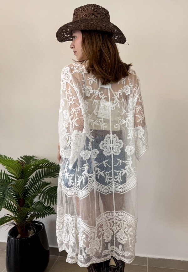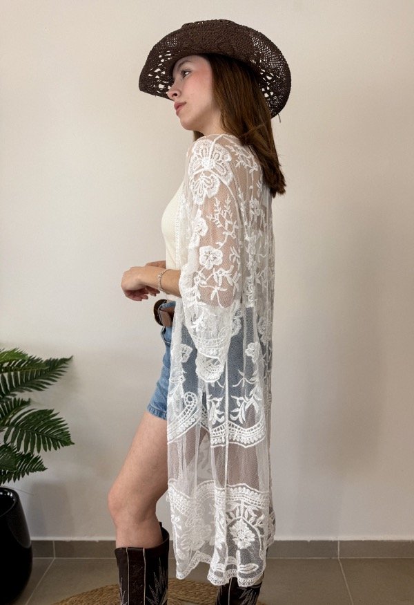 Presentamos el Kimono Kalila una prenda que cautiva con su diseño etéreo. Confeccionado en microtul bordado, este kimono es la elección ideal para quienes buscan un toque de elegancia y sofisticación en cada detalle. Su diseño de sutiles transparencias resalta la feminidad y aporta un aire ligero y refinado. Las mangas cortas ofrecen frescura y comodidad, acompañando cada movimiento con gracia y estilo. El cierre delantero abierto se realza con un lazo para atar, permitiéndote ajustar la prenda y crear distintos looks según la ocasión. Ideal para complementar tus conjuntos favoritos, el Kimono Kalila es versátil y se adapta tanto a ocasiones especiales como a momentos cotidianos en los que deseás destacar. Su confección en microtul bordado brinda una textura única y un acabado impecable que realza cualquier outfit.