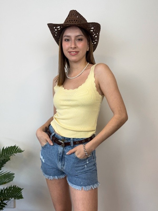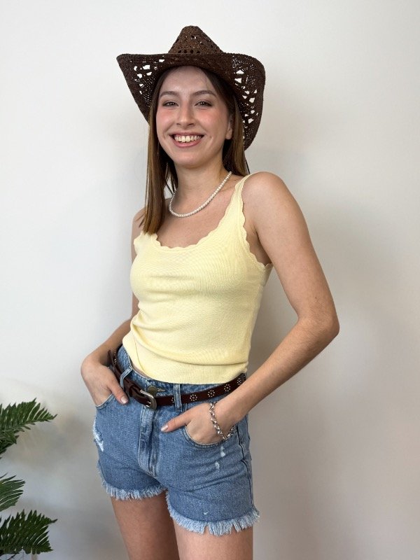 Descripción : Musculosa tejida de bretel ancho con terminación diferenciada en escote y sisa