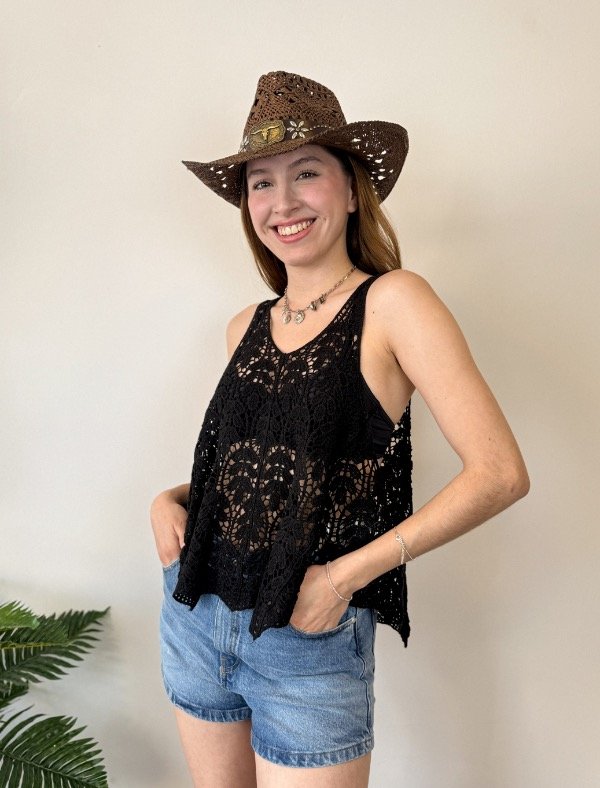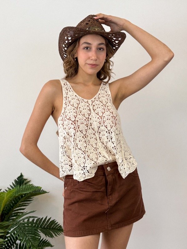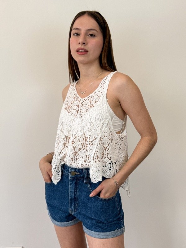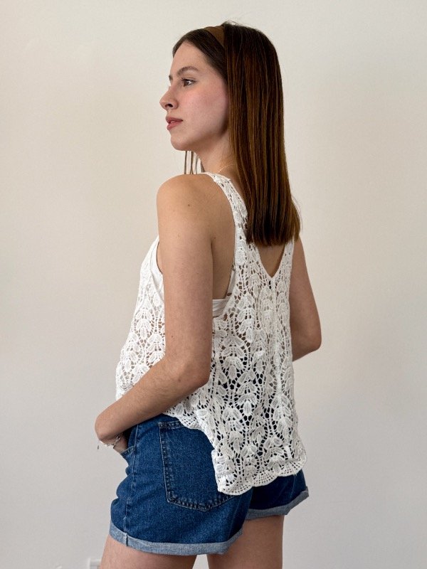Presentamos la Musculosa Lyla una pieza que combina diseño contemporáneo y comodidad, pensada para realzar tu estilo en los días más cálidos. Confeccionada en hilo de algodón, esta musculosa garantiza una sensación suave y fresca sobre la piel, permitiendo que te muevas con total libertad. Su diseño de tejido calado aporta un toque artesanal y delicado, ideal para quienes buscan destacar con elegancia y sofisticación. El escote en pico favorece y estiliza la figura, mientras que los tirantes anchos y la manga sisa aseguran un calce confortable. Además, el corte evasé brinda una caída fluida que acompaña tus movimientos, transformando esta prenda en una opción versátil tanto para ocasiones casuales como para eventos especiales.
