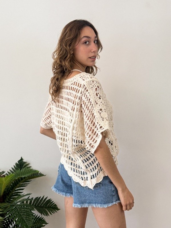 Presentamos la Remera Bennet una propuesta que conquista por su diseño y calidad, pensada para realzar tu estilo cotidiano con un toque distinguido. Confeccionada íntegramente en hilo de algodón, esta prenda garantiza una suavidad natural y una frescura inigualable, acompañándote en cada momento del día. Su escote redondo enmarca delicadamente el rostro, mientras que las mangas cortas con sisa caída aportan una silueta relajada y actual, perfecta para quienes buscan comodidad y tendencia en una sola pieza. El auténtico protagonista es su diseño de tejido calado, que otorga textura y un aire sofisticado, permitiendo que la Remera Bennet se destaque en cualquier look, ya sea con jeans o faldas.
