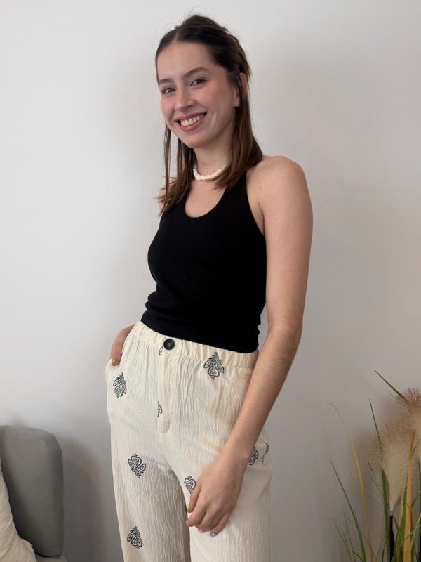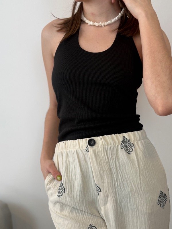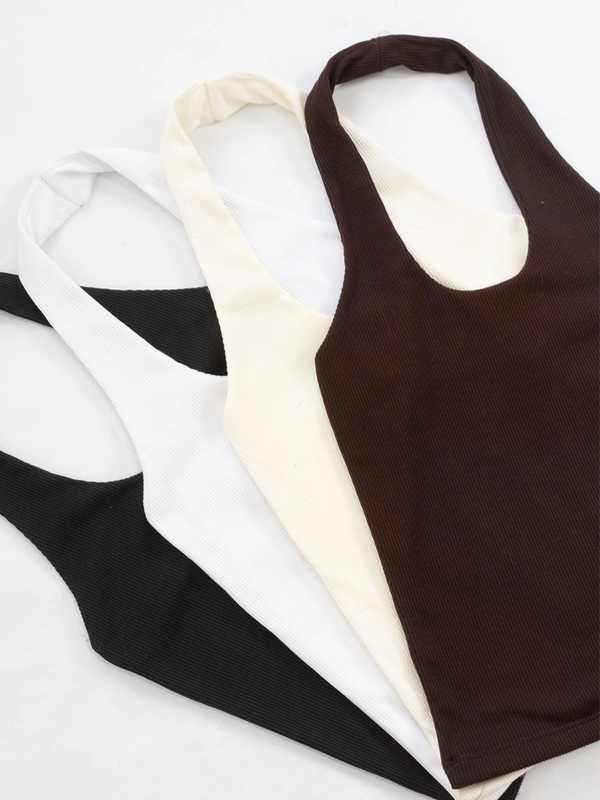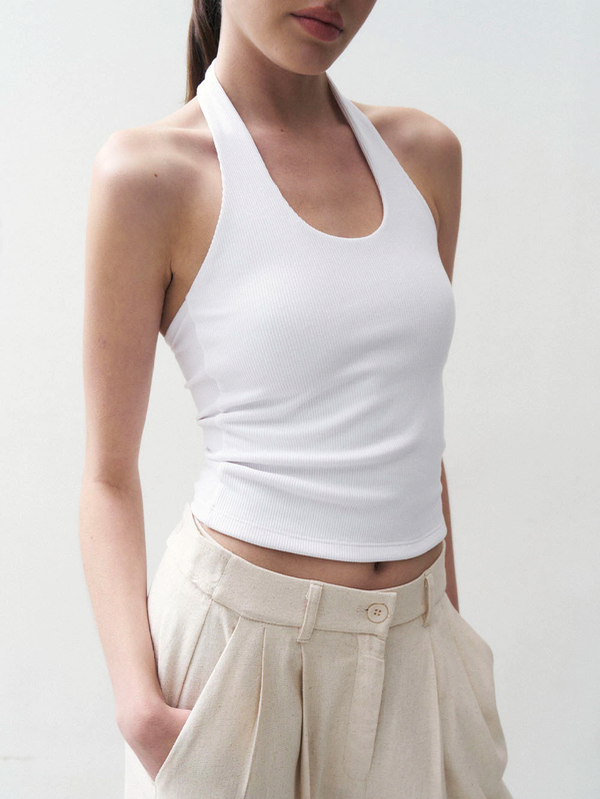 Top de cuello halter con escote redondo con delantero doble para que no transparente.