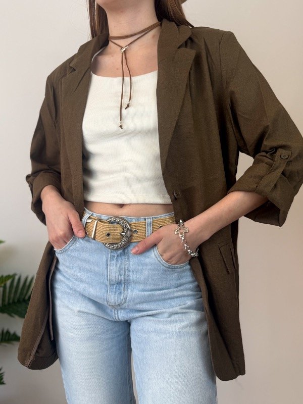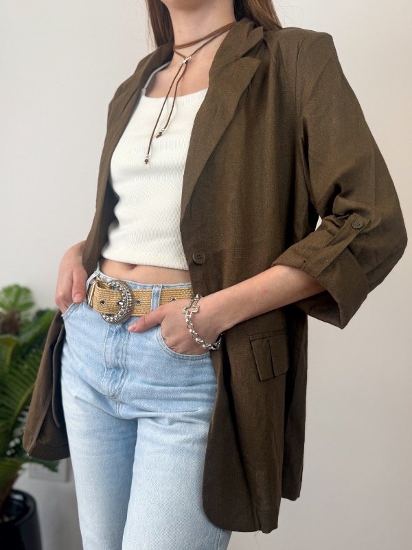 Confeccionado en lino de alta calidad, este blazer ofrece una textura liviana y fresca, ideal para acompañarte en cualquier estación y ocasión. El cuello con solapa en pico aporta un toque elegante y moderno, mientras que las hombreras estructuran la silueta, brindando presencia y estilo. Su cierre delantero con un botón realza la practicidad y el diseño minimalista, facilitando su uso tanto en looks formales como informales. Funcionalidad y diseño se unen gracias a sus bolsillos frontales, perfectos para llevar lo esencial, y un detalle único en las mangas: cuentan con un botón para arremangar, permitiéndote adaptar el blazer a tu propio estilo y comodidad. El Blazer Meryl es la prenda clave para renovar tu guardarropa, destacando por su confección en lino, sus terminaciones delicadas y la posibilidad de crear múltiples combinaciones.