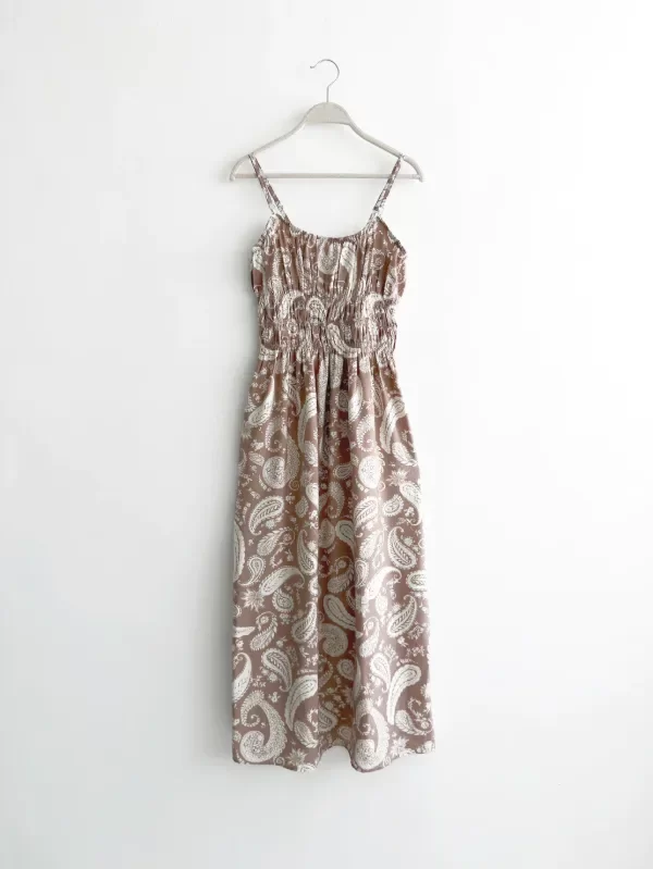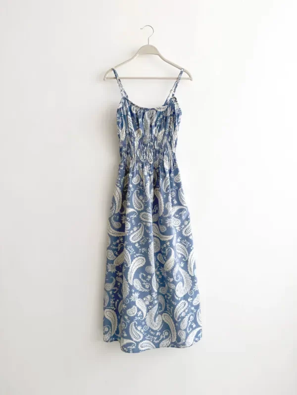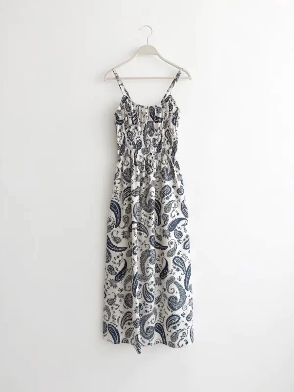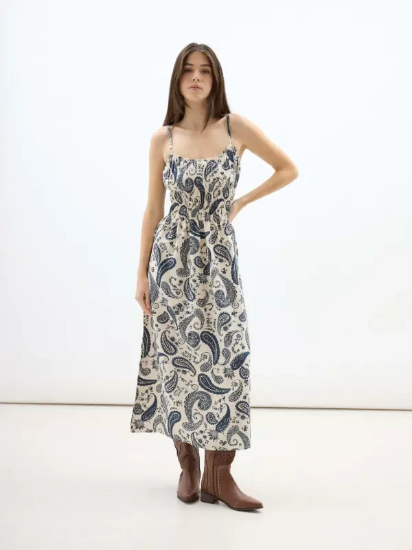 Descripción : Vestido largo de escote recto con breteles finos con reguladores. Detalles de elástico en el busto hasta la cintura.