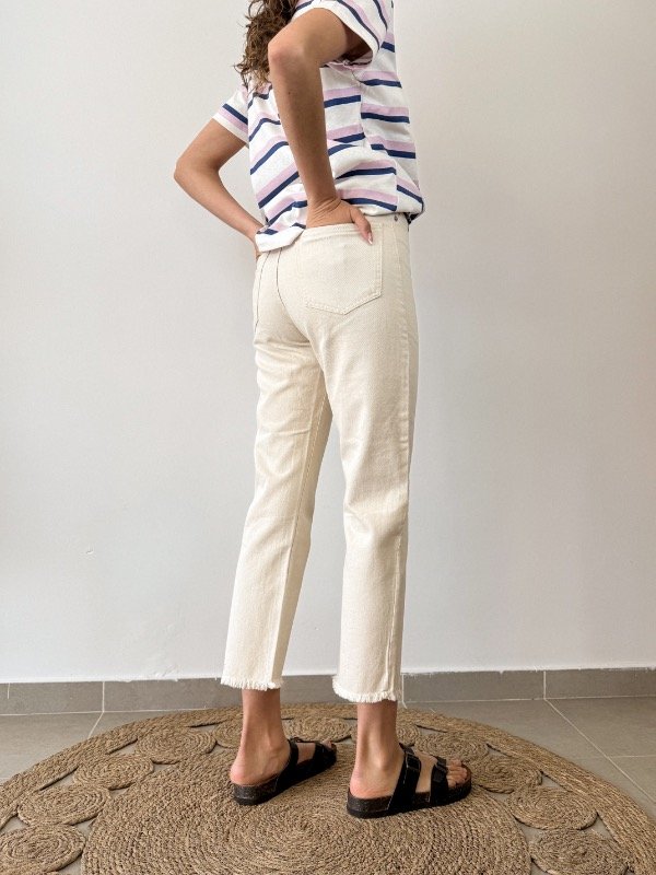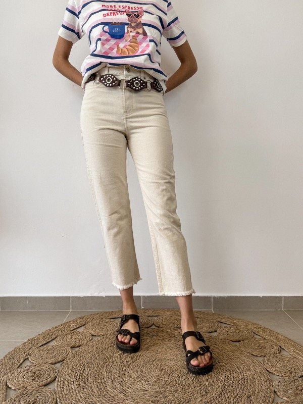 Presentamos el Jeans Recto Victoria Raw, una prenda que redefine el clásico denim con detalles de tendencia y un diseño atemporal. Confeccionados en denim rígido, estos jeans ofrecen una estructura firme que realza la silueta, convirtiéndose en un básico imprescindible para cualquier guardarropa moderno. El modelo se destaca por su corte recto, ideal para quienes buscan un equilibrio perfecto entre comodidad y estilo. El tono crudo aporta un aire sofisticado y versátil, permitiendo múltiples combinaciones para looks diurnos y nocturnos. Entre sus detalles más distintivos, incorpora cierre de cremallera y botón metálico, junto con pasa cintos en la cintura para sumar practicidad y personalización. Los bolsillos delanteros y en la espalda añaden funcionalidad sin perder el atractivo visual, mientras que el bajo acabado sin ruedo y desflecado otorga un toque moderno y desenfadado, perfecto para quienes buscan marcar tendencia.