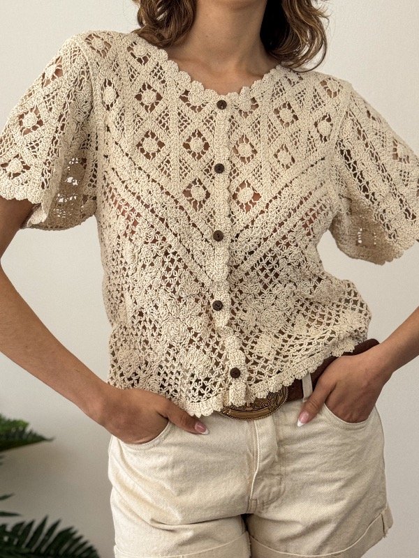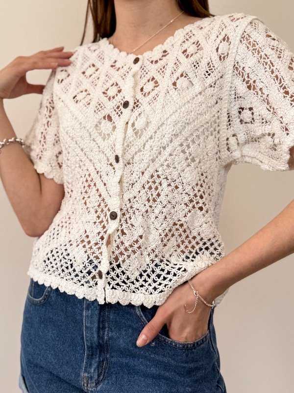 Presentamos el Cardigan Sailor una prenda única que redefine la elegancia cotidiana con un toque fresco y femenino. Confeccionada en hilo de algodón, esta pieza garantiza suavidad, confort y una textura delicada sobre la piel, ideal para acompañarte en cualquier estación. El escote redondo realza el cuello de forma sutil, permitiendo múltiples combinaciones para looks tanto casuales como sofisticados. Sus mangas cortas aportan ligereza y libertad de movimiento, mientras que el cierre delantero con botones de madera añade un detalle artesanal que destaca por su calidez y estilo natural. El verdadero encanto de este cardigan reside en su diseño de tejido calado, que aporta un aire romántico y moderno, permitiendo que cada conjunto cobre personalidad propia.