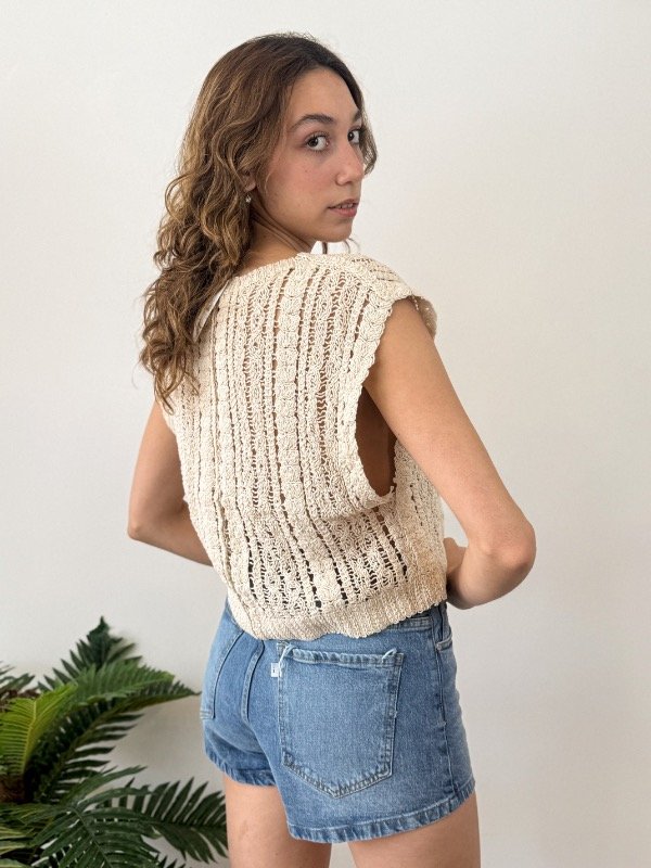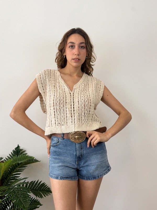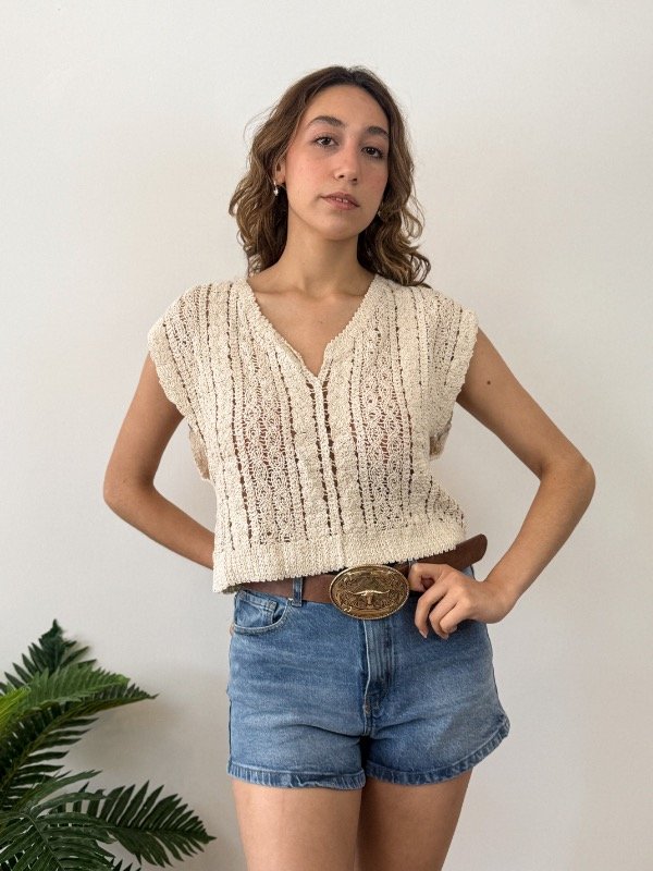Presentamos la Musculosa Marlene una pieza única que redefine el arte del tejido en cada detalle. Confeccionada en hilo de algodón, esta musculosa garantiza suavidad, frescura y una sensación ligera sobre la piel, perfecta para los días más cálidos o para lucir en superposiciones sofisticadas. El escote en V realza delicadamente el escote y aporta un toque moderno y femenino, mientras que la manga sisa brinda libertad de movimiento y una silueta favorecedora. Su exclusivo diseño de tejido calado transforma a la Musculosa Marlene en una prenda versátil y elegante, ideal para destacar tanto en looks casuales como en ocasiones especiales. Combinala con tus prendas favoritas y creá conjuntos únicos que reflejen tu estilo personal.